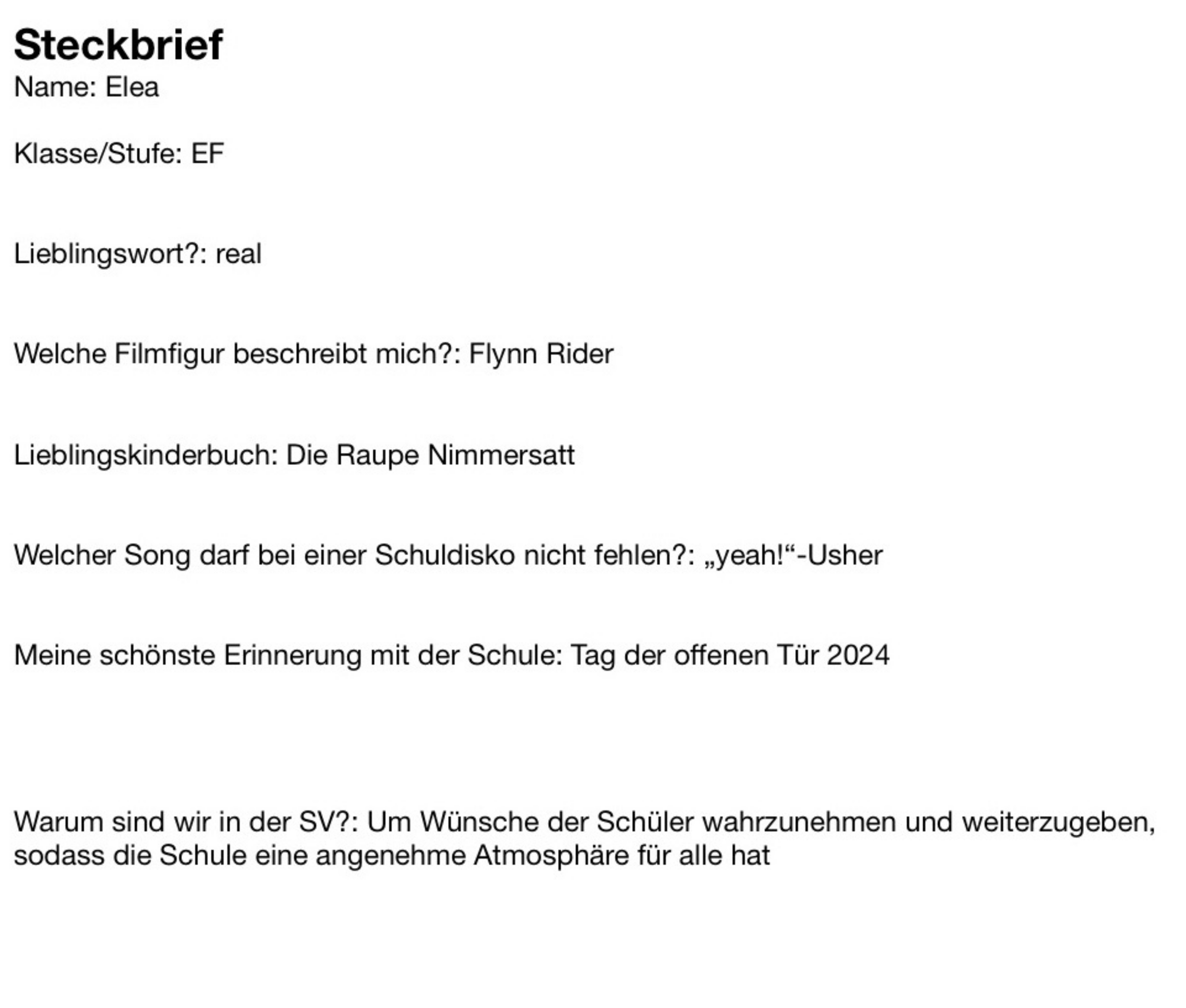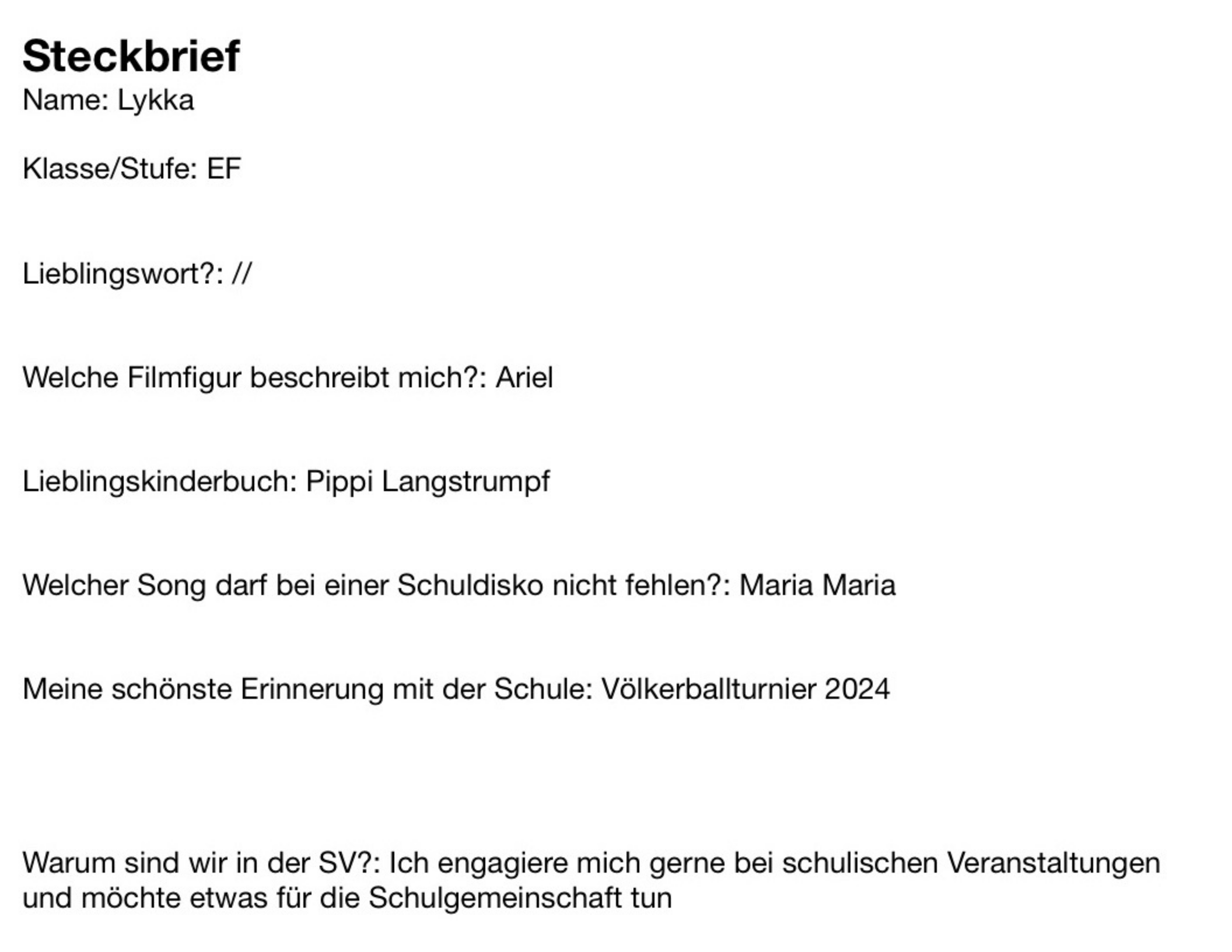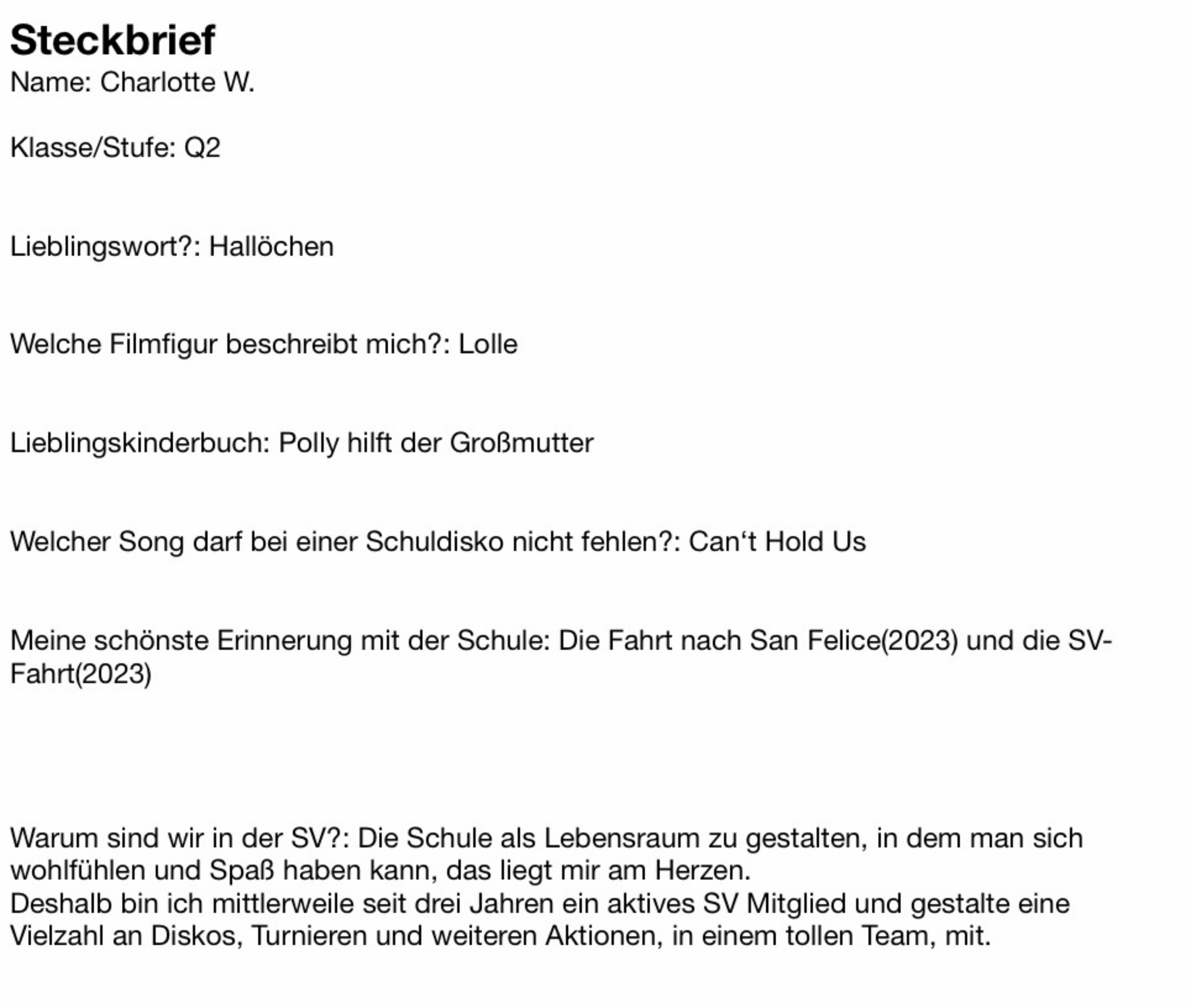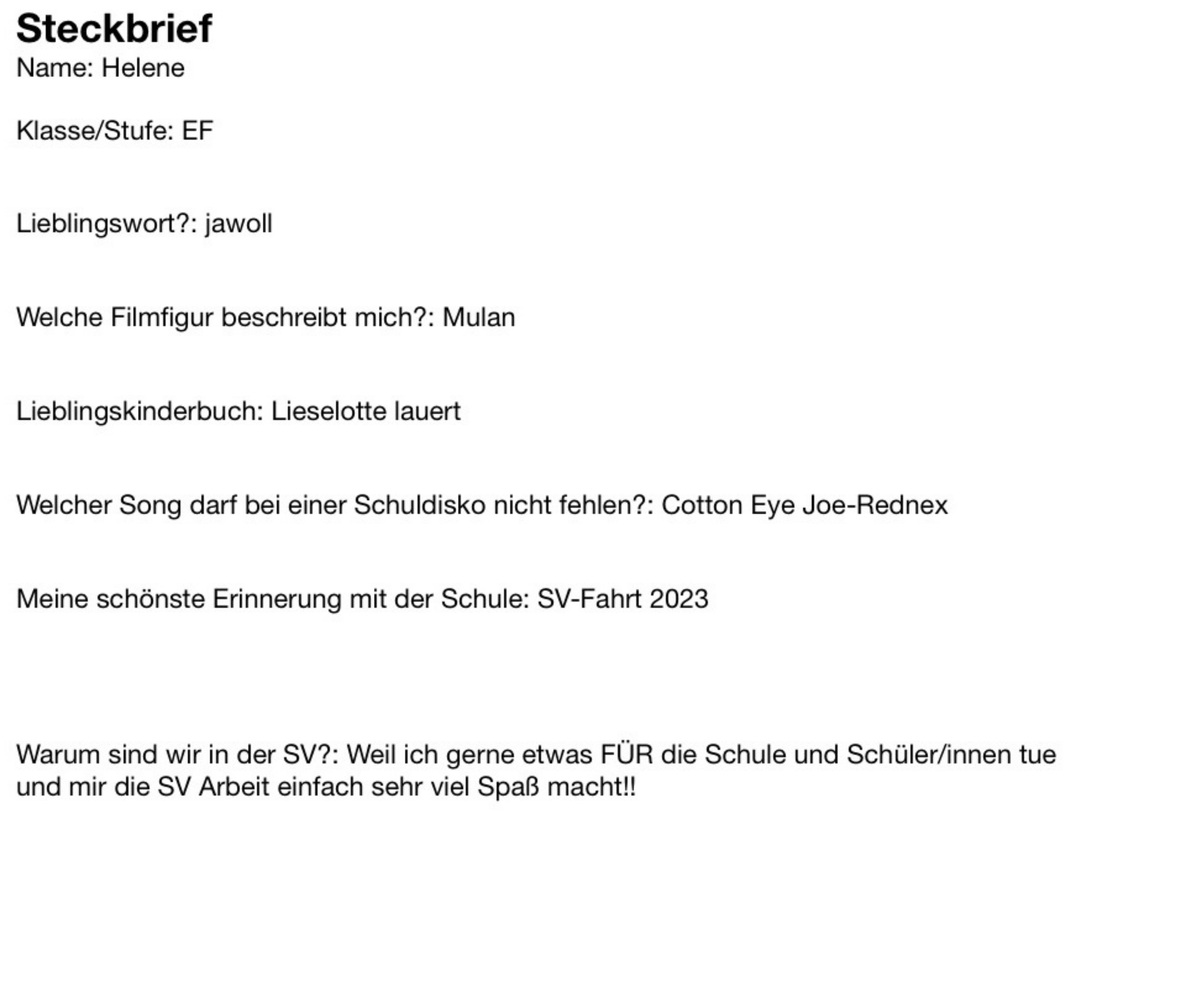 Damit Sie einen Eindruck von unserem Team bekommen, finden Sie hier einige Steckbriefe der Mitgliedern der SV.
